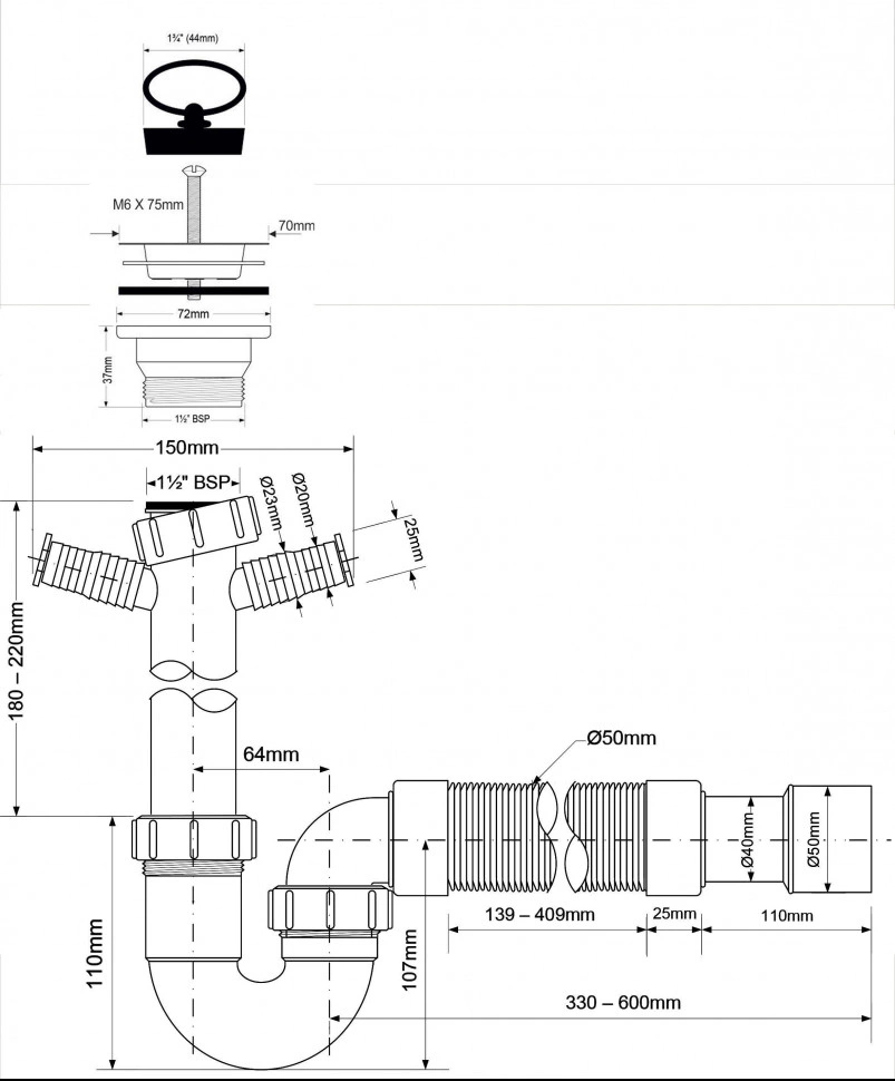 Сифон трубный P/S-образный McAlpine (1 1/2'х40мм) c выпуском, 2-мя адаптерами MRSK10 - качественное оборудование для вашего дома. Гарантия производителя, выгодные цены, доставка по всей России.