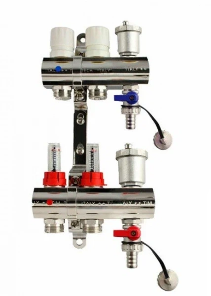 1. Главная функция коллекторных блоков - равномерное распределение теплоносителя в системах водяного теплого пола. Они обеспечивают подачу тепла к отдельным потребителям, таким как радиаторы, группы радиаторов или контуры теплых полов.