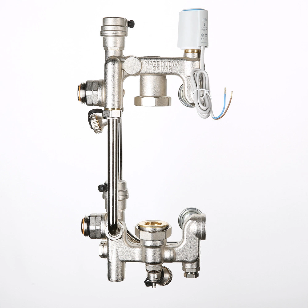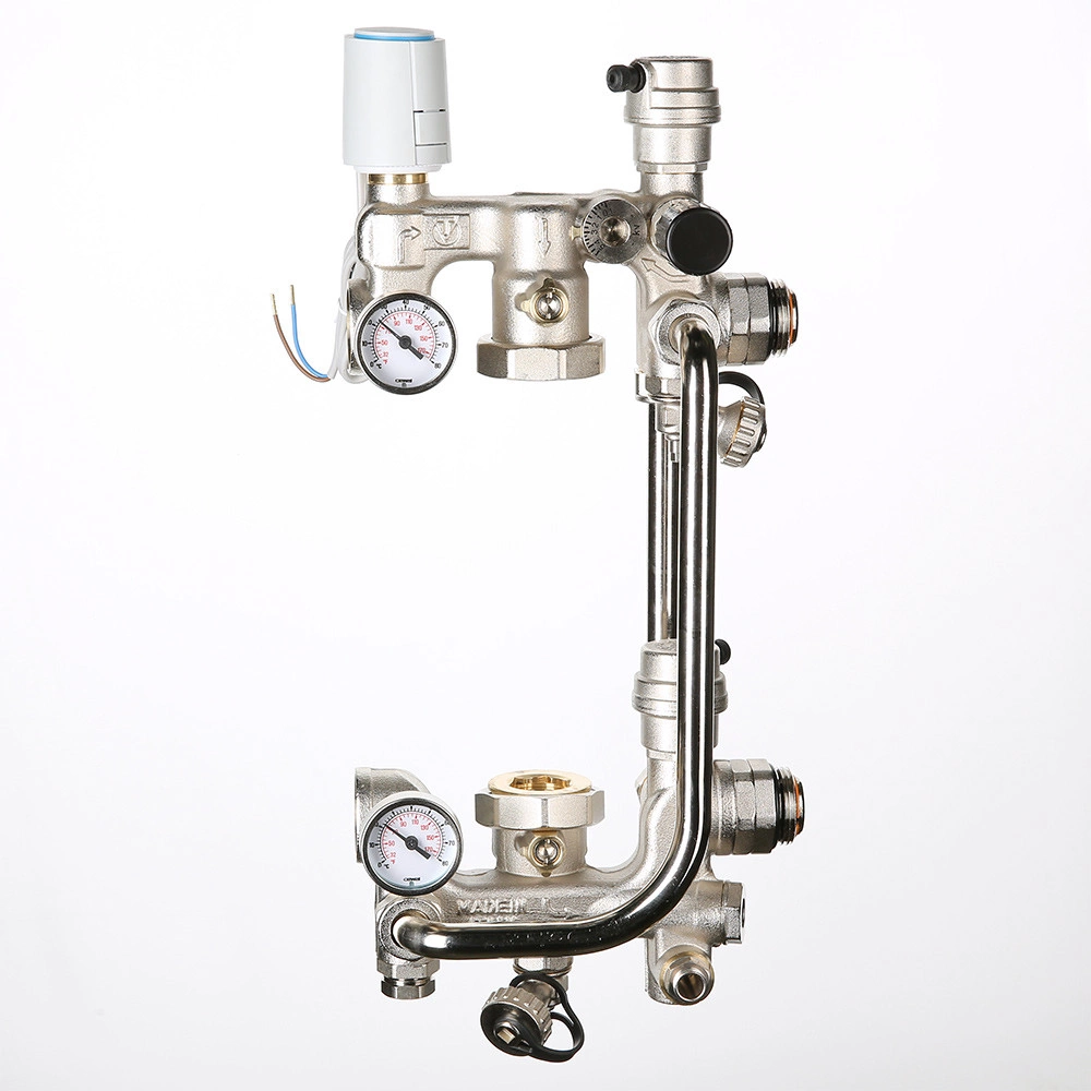 (VT.COMBI.S) Насосно-смесительный узел VALTEC COMBI.S.180.M предназначен для систем водяного теплого пола, где процесс приготовления теплоносителя с низкой температурой, отличной от температуры прямой линии первичного контура, осуществляется через подмешивание жидкости из обратной линии вторичного контура. Регулирование выполняется двухходовым клапаном, установленным на подающей линии первичного контура и оснащенным электротермическим сервоприводом VT.TE3041.0.024 (нормально закрытый).