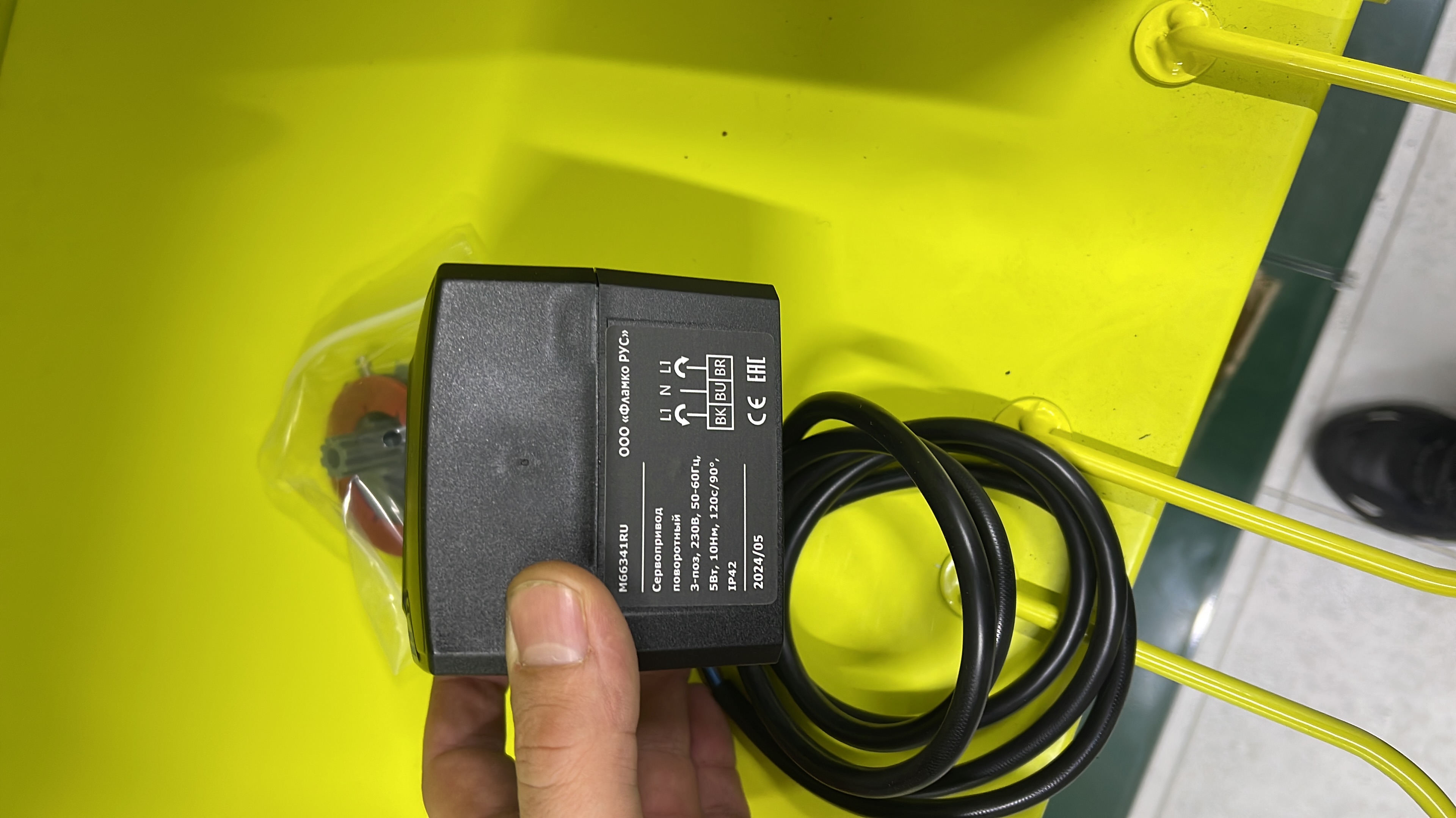 Этот сервопривод необходим для автоматизации процесса смешивания теплоносителя в насосной группе из обратной линии в подающую линию. Благодаря этому, температура теплоносителя поддерживается на постоянном уровне, что способствует эффективной работе системы отопления. Для подключения к смесителю сервопривод имеет три провода: коричневый (для фазы поворота налево), синий («нулевой» провод) и белый (для фазы поворота направо).