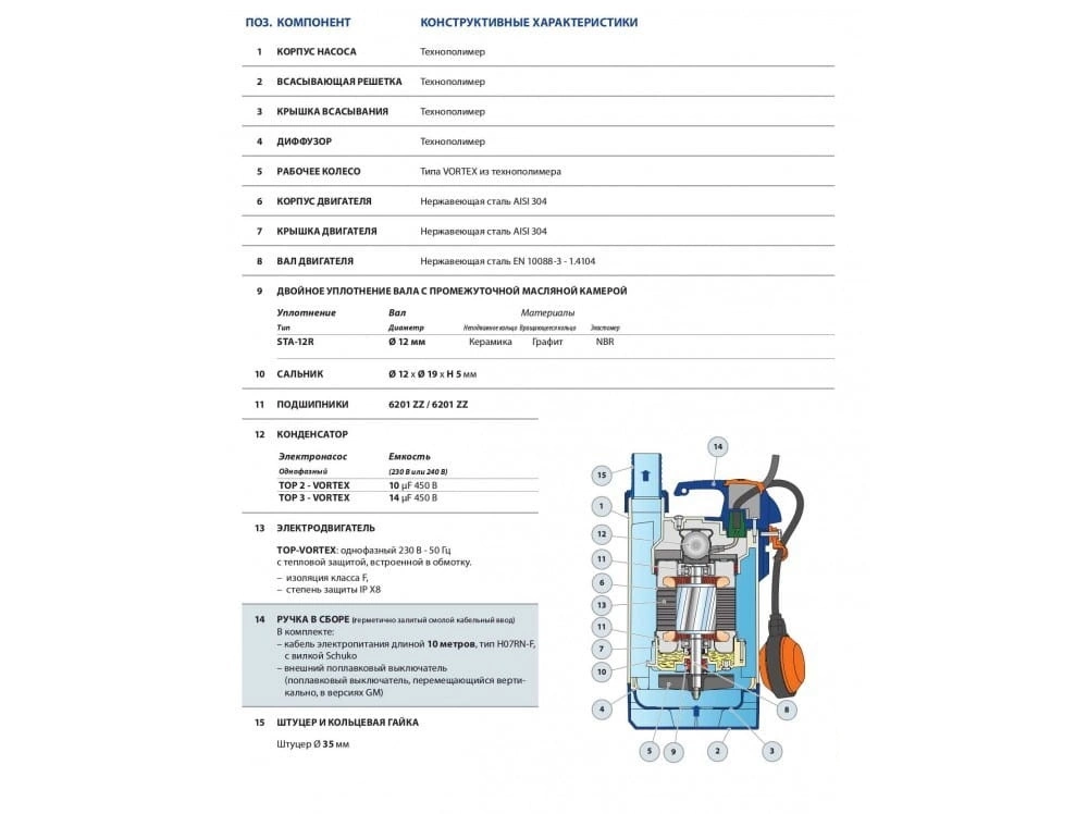 Дренажный насос Pedrollo TOP 2-VORTEX 48TOPV12A1 — ваш надёжный помощник в борьбе с водой